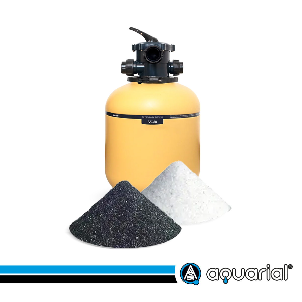 Conjunto de material filtrante óptimo para filtro VC-20 compuesto por 1.5 kg de antracita y 16.5 kg de cuarzo.